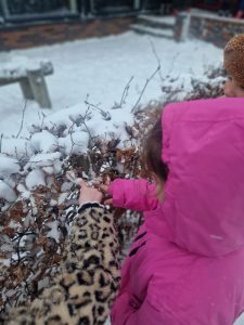 Daarnaast worden alle zintuigen geprikkeld. Sneeuw voelt koud aan, knispert onder je schoenen en smelt als je het even in je hand houdt. Zo ontdekken kinderen spelenderwijs wat kou doet en wat het verschil is tussen bevroren en smeltend water.